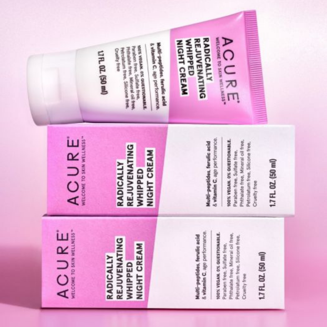 This latest Acure lightweight whipped superfood cream is created with multi-peptides, vitamin C, ferulic acid and glacial glycoproteins to soothe and hydrate the skin. Great for age performance and ideal anti ageing cream.