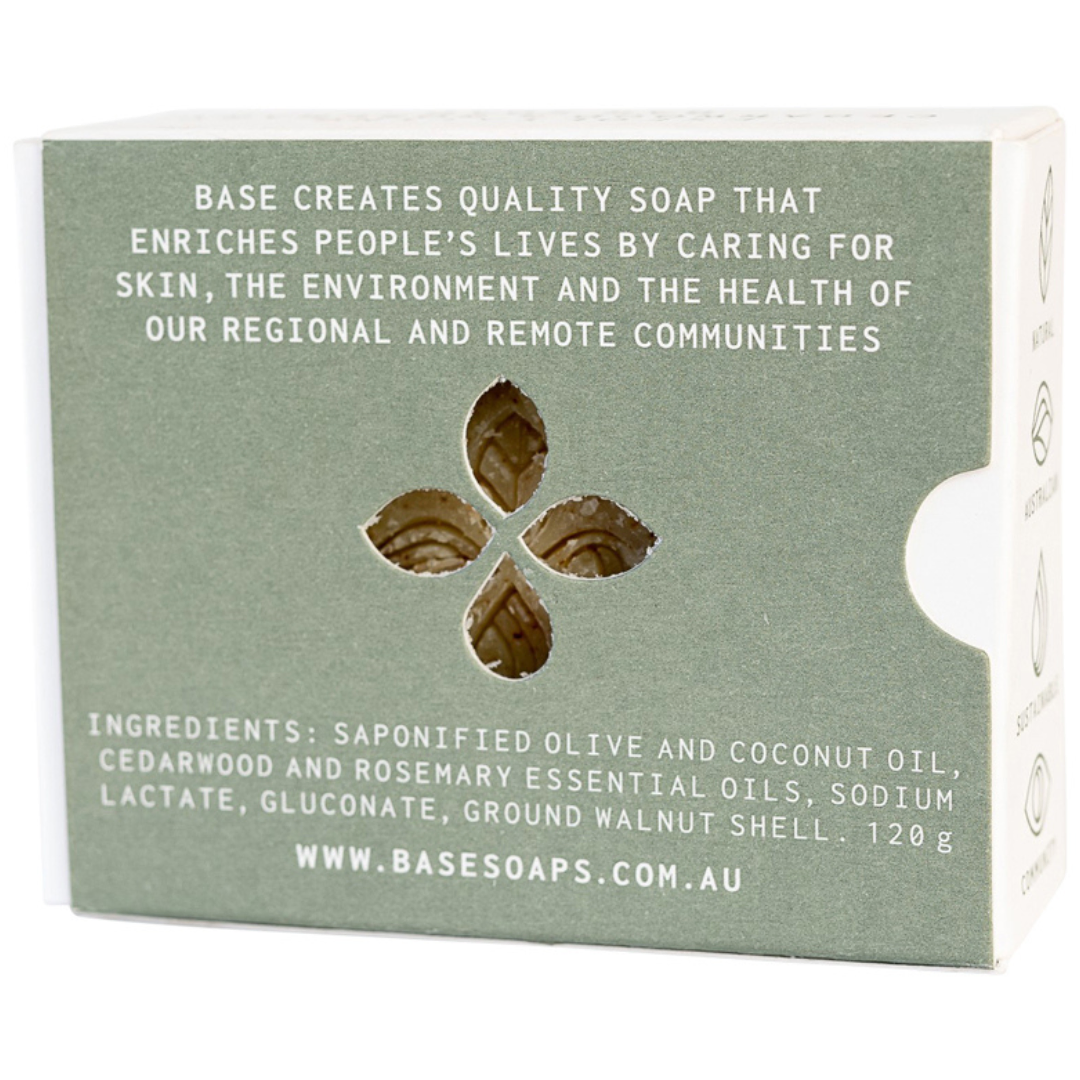 The Base Soaps Cedarwood and Rosemary Bar is a powerful soap crafted for heavy-duty cleaning, making it perfect for tackling extra dirty hands after tough jobs. With crushed walnut shell as a strong exfoliant and earthy essential oils, this bar is a hardworking sink soap made with natural, sustainably sourced ingredients. This uniquely formulated bar offers deep cleansing for hardworking hands while supporting a zero-waste, eco-friendly lifestyle.