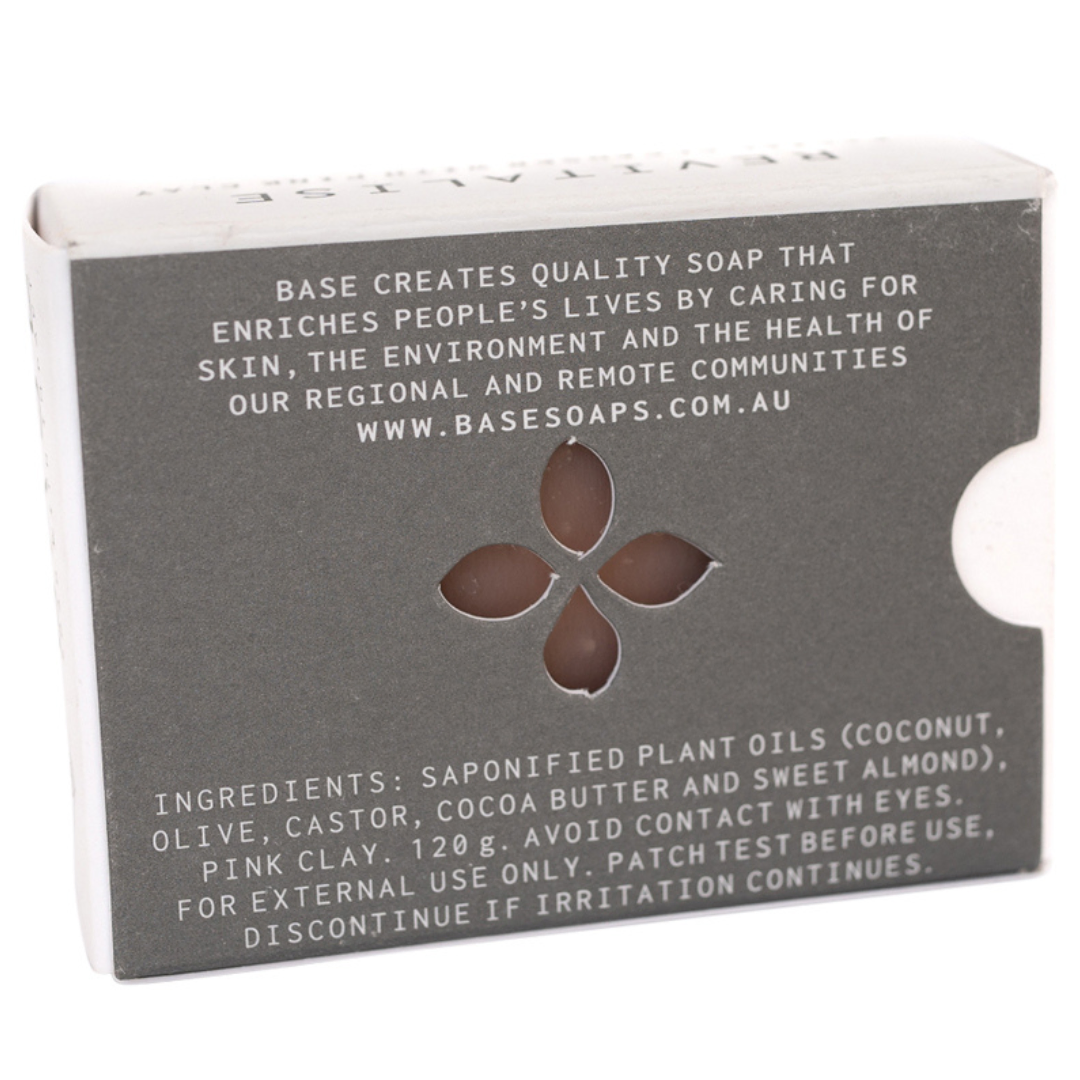 The Revitalise Facial Cleansing Bar by Base is specially designed for those with balanced skin, offering a gentle and effective addition to your skincare routine. Formulated with pink clay and nourishing natural ingredients, this palm oil-free bar provides a refreshing cleanse while leaving your skin soft and smooth. Avoid contact with the eyes and finish your routine with a moisturizer for optimal hydration.