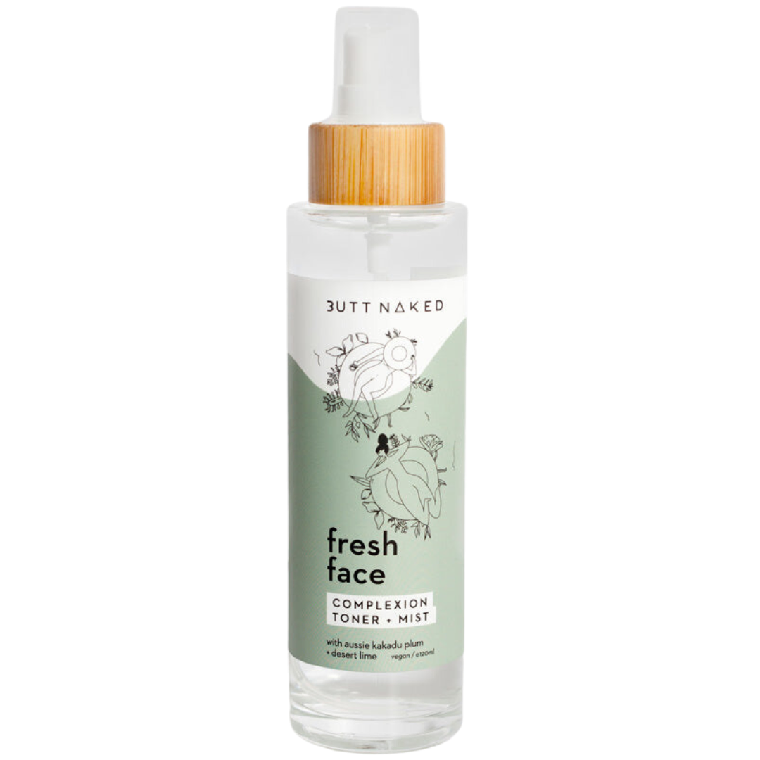 Goodbye gunk, hello clean pores! Tightening and balancing skin tone is all in a day's work. Butt Naked Fresh Face Toner helps with skin tightening, balancing skin tone, cleaning pores and removing excess dirt.