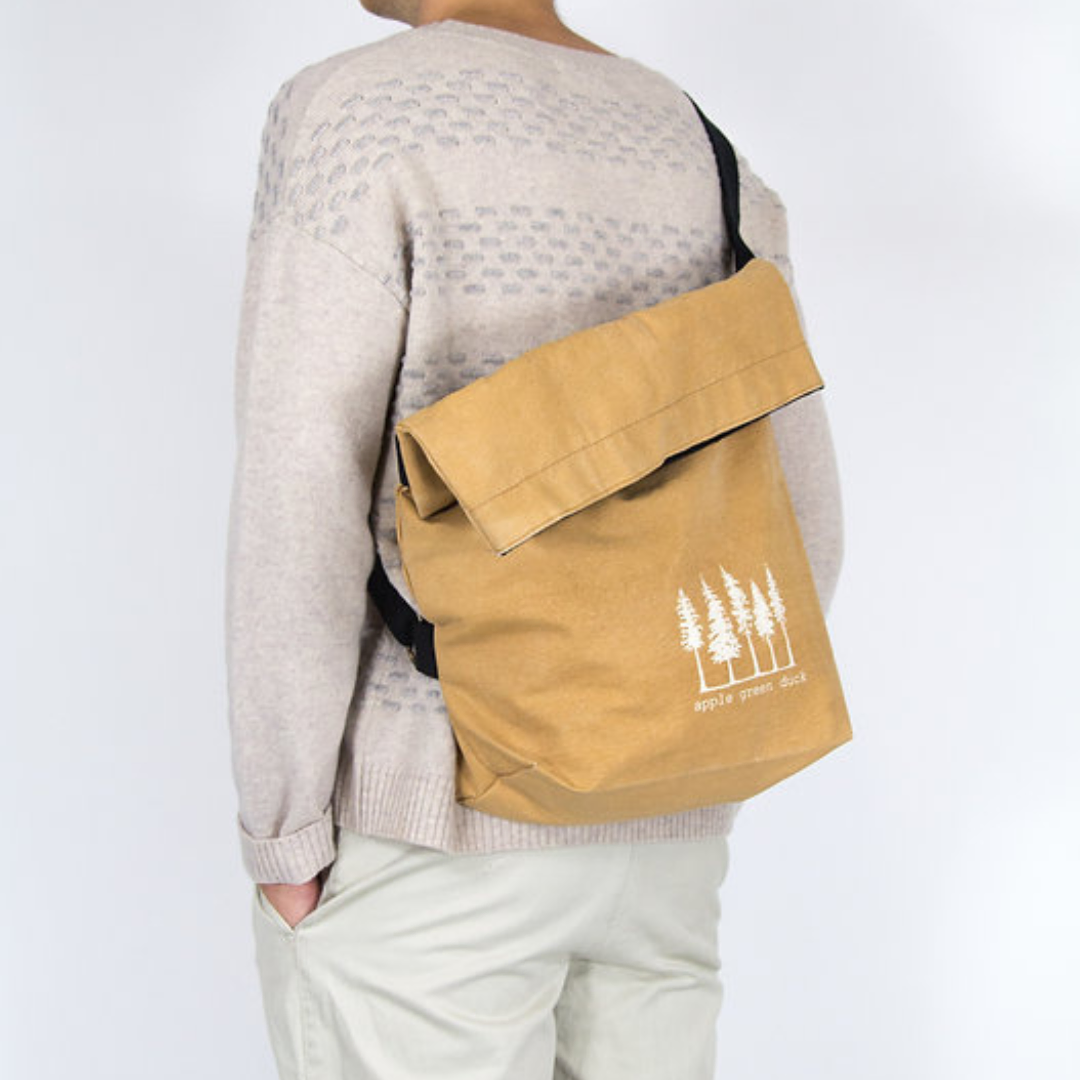 Discover the Apple Green Duck Canvas Sling Tote in Ochre, a versatile and practical bag designed for life on the go. This sturdy canvas 2-way tote can be worn across the body like a backpack or carried using the convenient short handle.
