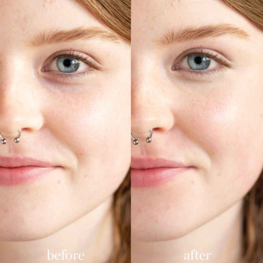 2. With fingertips or a precision brush, deposit and blend to even out skin tone and colour correct other areas of the face.