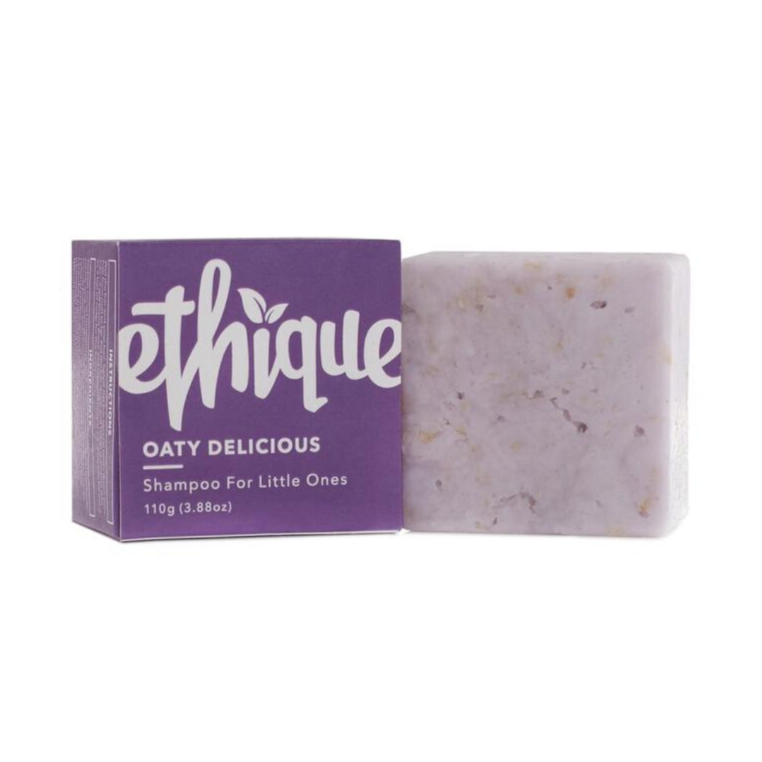 Oats and coconut oil with lavender oil all packaged in a perfect baby bar. Mild and gentle, yet foamy and sweet smelling. Ethique Gentle Shampoo Bar For Little Ones is formulated for hair and body so bath time is easy with no need to mess with numerous bottles. Leaves hair soft and silky for no stress brushing. pH balanced, but as Ethique don't use additional ingredients that block the eyes natural tear response, this will not be a 'no tears' product like many baby products out there.