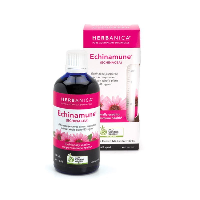 Echinacea has traditionally been used in Western herbal medicine to support the immune system and is known for its ability to support healthy immune function. Herbanica Certified Organic Plant Tincture Echinamune - Echinacea is proudly made in Australia with Australian grown herbs. Processed within hours of harvesting. Echinacea purpurea extract is equivalent to fresh whole plant 450 mg/ml.