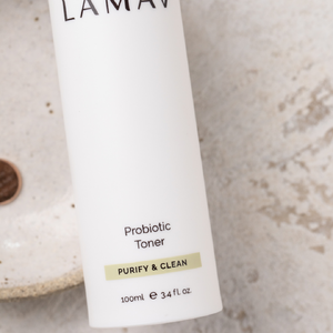 La Mav Probiotic Toner is a unique blend of probiotics that helps to balance the skin’s microbiome while boosting skin's immune health for a vibrant, healthy complexion. Alpha hydroxy acids (AHA's) assist in improving cell turnover and stimulating collagen production as well as improving skin hydration. It reduces inflammation to reveal a clear and brighter complexion whilst minimizing the appearance of blemishes and imperfections. Probiotics stimulate the skin's renewal process; help restore radiance and balance to the skin regardless of the type of impairment (environmental stress, ageing); assist in regeneration as well as protecting the skin by repairing skin’s barrier function, retaining moisture, healing wounds, and increasing collagen and elastin production for anti aging effects; have potent anti inflammatory properties to bring calmness to the skin and soothing redness and irritation; have the ability to boost the skin’s natural defence, rebuilding and strengthening it; thanks to their calming, nurturing and anti-inflammatory qualities, they are also really beneficial for those with skin conditions such as acne, rosacea and psoriasis. Lilly pilly extract also known as riberry, this plant derived extract is a rich source of vitamin C, essential for skin health and assists with skin repair. Widely used to brighten the complexion and reduce pigmentation associated with ageing. Also supports collagen production, firming and smoothing the skin’s surface. AHA’s purify and exfoliate the outer layer of the skin encouraging cell turnover and healing blemishes. It helps balance skin’s pH, while helping to stimulate collagen production for a more hydrated and plump appearance. Aloe vera leaf juice and lavender flower waterrevitalise a dull complexion to reveal skin’s true natural radiance. Bilberry and raspberry extract purifies and protects from free radicals.
