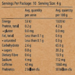 Mavella Superfood Kombucha Enegy Powder is made with Australian kakadu plum and wild lime with added prebiotics and herbs to rev up digestion and feed your good bacteria. It contains superfoods such as blue spirulina, plus prebiotics (inulin & F.O.S), Australian green banana starch & acacia fibre) that feed the good bacteria to allow them to grow. With added guarana & green coffee – a natural caffeine kick. Acid and bile tolerance tested, to ensure quality probiotics that can pass through the harsh environment in the stomach. Experience a flavourful adventure of tantalising delicious Australian natives mixed with some exquisite superfoods that will not only bring your taste buds to life but your gut will thrive with our speciality blend of black and green tea freeze dried kombucha and micro encapsulated probiotics that will travel down and make it safely to where it should be, to do their job.