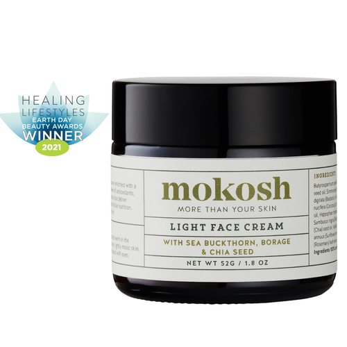 Mokosh Certified Organic Light Face Cream is an intensive daily cream suitable for normal and dry skin. Enriched with antioxidants that help neutralise free radicals and protect collagen, as well as omega 3 and omega 6 fatty acids, vitamins and other phytonutrients that deliver superior production and potent cellular nutrition. Mokosh lightly textured, water free formula is highly concentrated and readily absorbed. This unique formulation is based on highly nutritious unrefined shea butter and blended with a range of precious oils including baobab, sea buckthorn, elderberry, chia, borage and camellia. Lightly scented with vanilla, and leaves the skin feeling beautifully soft, nourished and protected. For normal, dry and mature skin. Please store below 30ĀŗC to maintain in its creamy state.
