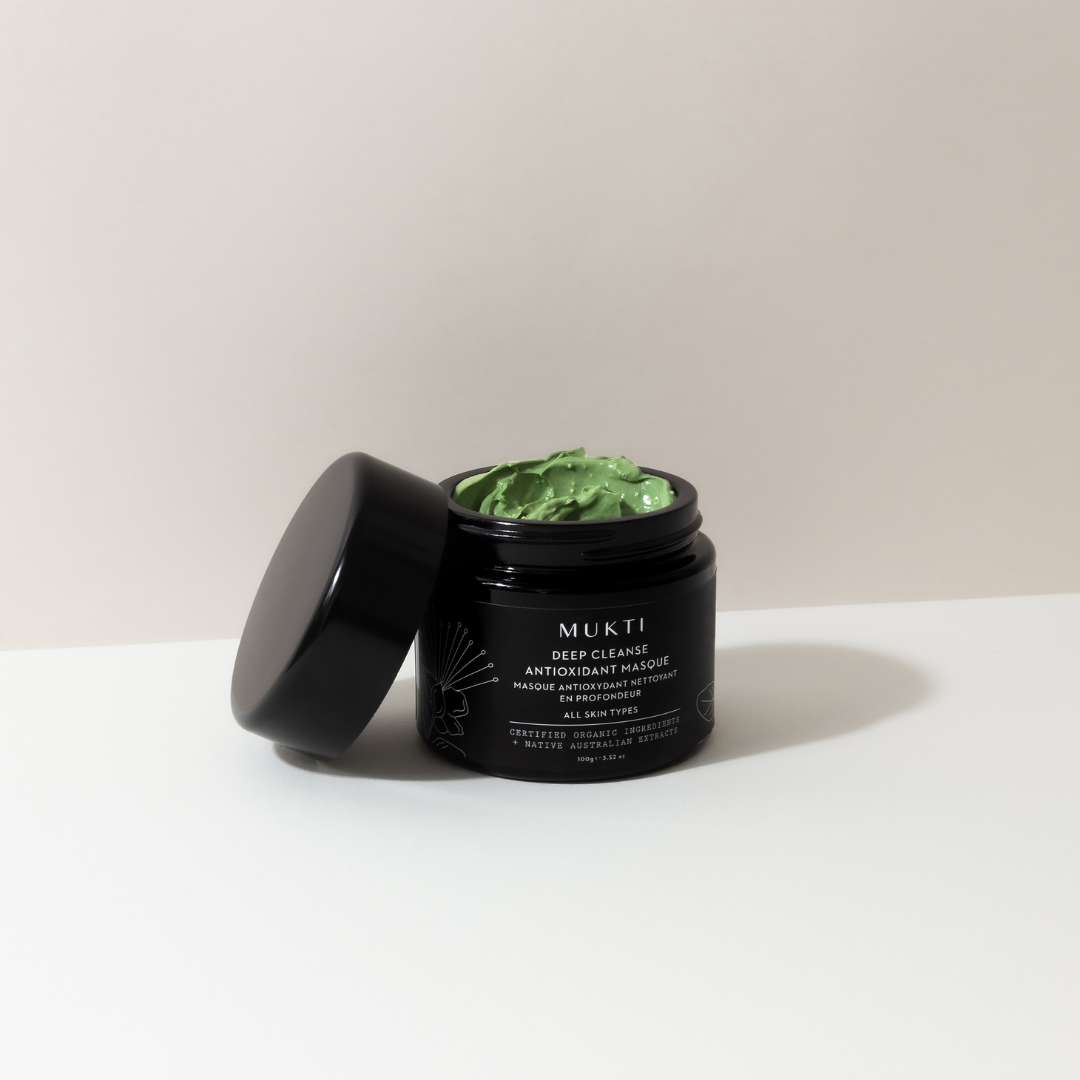 Mukti Organics Deep Cleanse Antioxidant Masque works to detoxify the skin while imparting essential minerals and antioxidants encouraging a fresh, bright, glowing complexion. A unique papain enzyme exfoliating complex and botanical native extracts remove dead skin cells and promote absorption. Spherical jojoba esters gently melt into the skin retaining hydration, while fine white argiletz clay works to balance oil production. Due to the natural and organic origin of ingredients, there may be variations in appearance and texture between batches. This is completely normal and doesn’t in any way affect the performance or efficacy of the product.