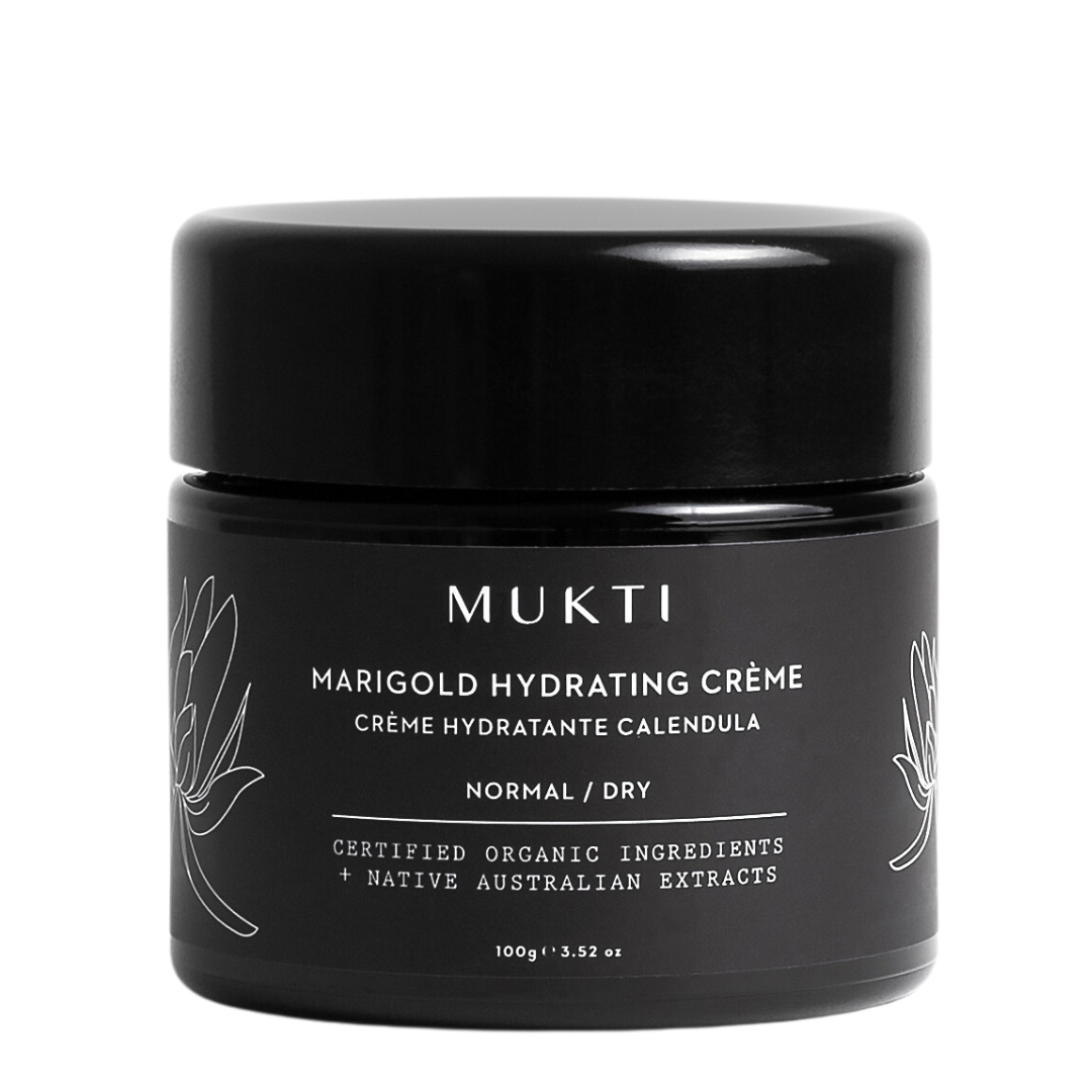 Luxurious, deeply moisturising, and reparative, Mukti Organics Marigold Hydrating Crème is suitable for all dry skin conditions. The complexion instantly appears hydrated, smoothed, luminous and more healthy looking. The sumptuous, buttery texture of this best selling facial moisturiser is infused with C02 extracts of calendula, gotu kola, CoEnzyme Q10 and vitamin E plus native botanical extracts of kakadu plum, willowbark and cornflower. All work harmoniously to promote elasticity and suppleness while soothing and calming redness and irritation. Due to the natural and organic origin of ingredients, there may be variations in appearance and texture between batches. This is completely normal and doesn’t in any way affect the performance or efficacy of the product.