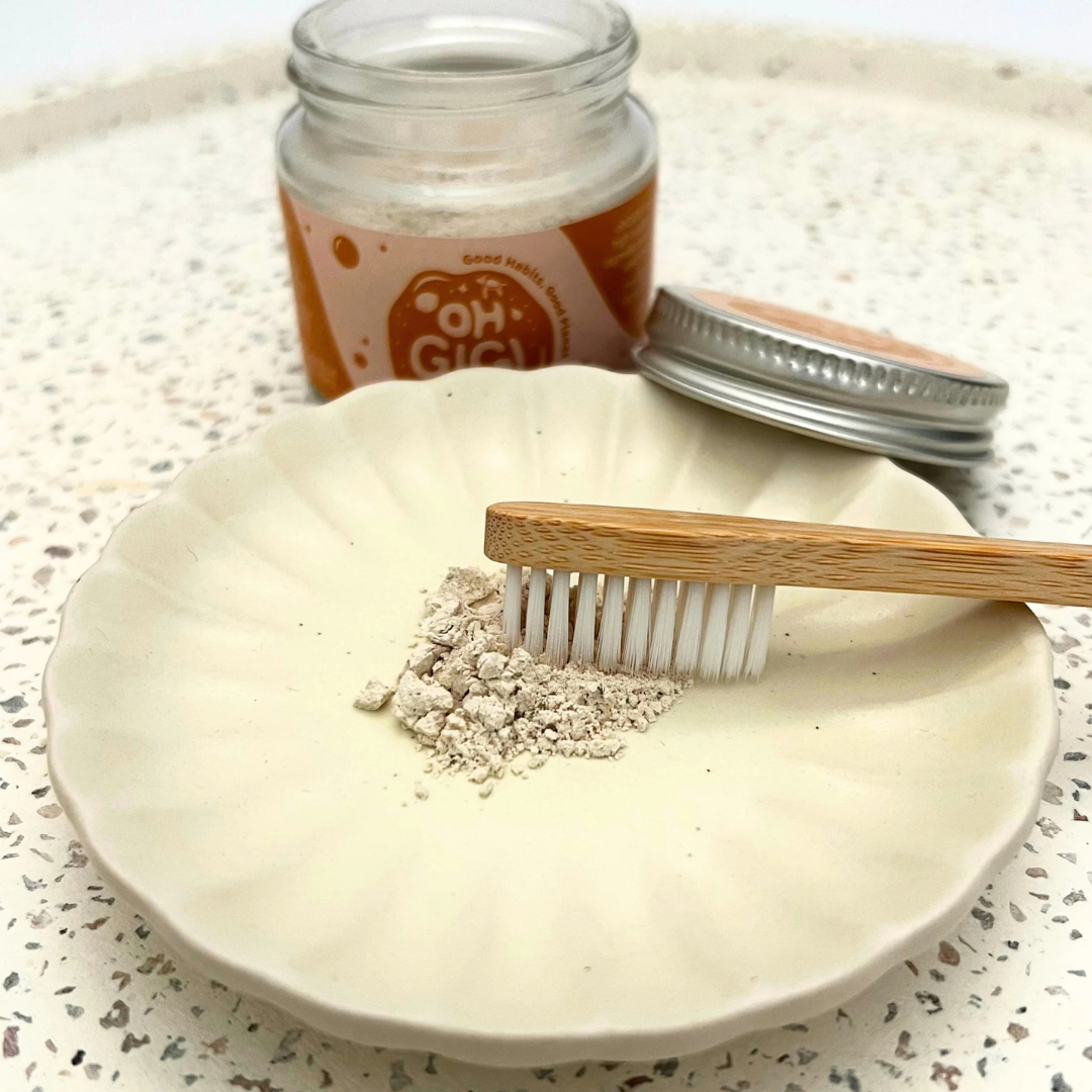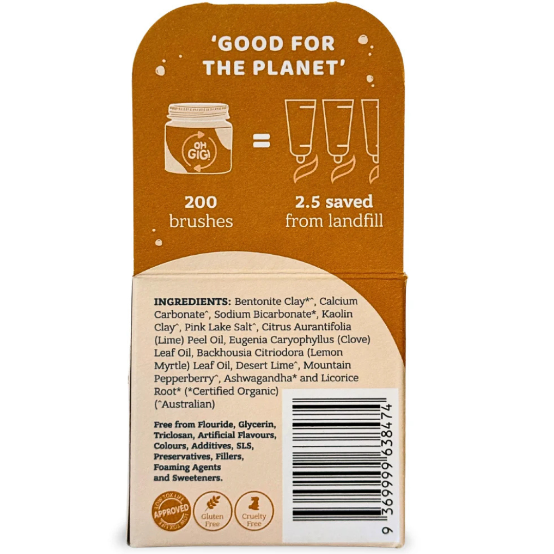 OhGiGi Organic Tooth Powder Native Brush is Australian-made toothpowder, formulated from high-quality, pure food-grade, and locally sourced mineral-rich biodegradable ingredients, refreshing essential oils, and Australian bush botanicals that gently and effectively cleans, polishes and whitens teeth.