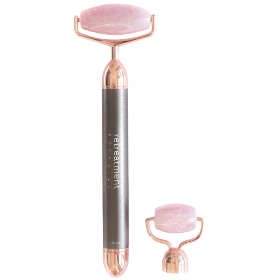 Sculpt and lift your skin with this advanced technology. Retreatment Botanics Sculpt & Lift Micro Vibration Roller Set vibrates with a gentle 6,000 sonic vibrations per minute, resulting in visibly firmer and smoother skin. Rolling daily also improves skin circulation and enhances the absorption of the active ingredients in your skincare. Also included is an under eye roller head, designed specifically for the delicate eye area to reduce puffiness and dark circles. Rose Quartz symbolises unconditional love and positive energy, bringing self love into your skincare ritual.