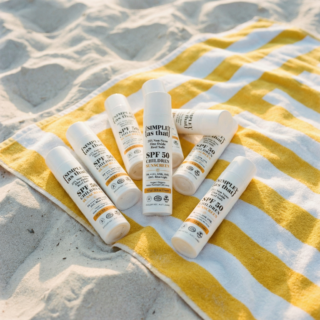 Babies should be sheltered from the sun as much as possible. However if this isn’t possible, Simple As That Children’s Sunscreen has been formulated to be safe enough to use on delicate and sensitive skin. As with any product, we recommend you do a patch test on a small area of skin before general use.