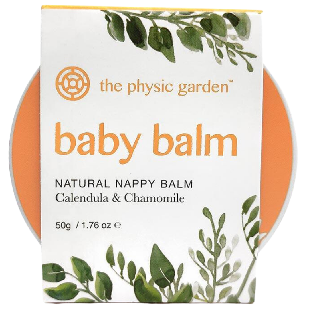 The Physic Garden know how busy you are looking after bub, so they made a completely natural, all in one balm to protect and nurture baby skin, whether it's nappy rash, cradle cap or rash. With shea butter and olive oil to moisturise and provide a protective barrier this baby balm is gentle & easy to apply - and a little goes a long way! The Physic Garden natural and vegan baby balm is ideal for sensitive skin as it's free from bee ingredients, gluten, dairy, nuts & seeds! Calendula is naturally anti bacterial, chamomile and chickweed soothe dry or inflamed skin. Suitable for all ages from newborn and up. The Physic Garden only source the highest quality ingredients from organic, sustainable and fair trade sources wherever possible. Handmade with love in small batches in Melbourne Australia, to assure quality and freshness.