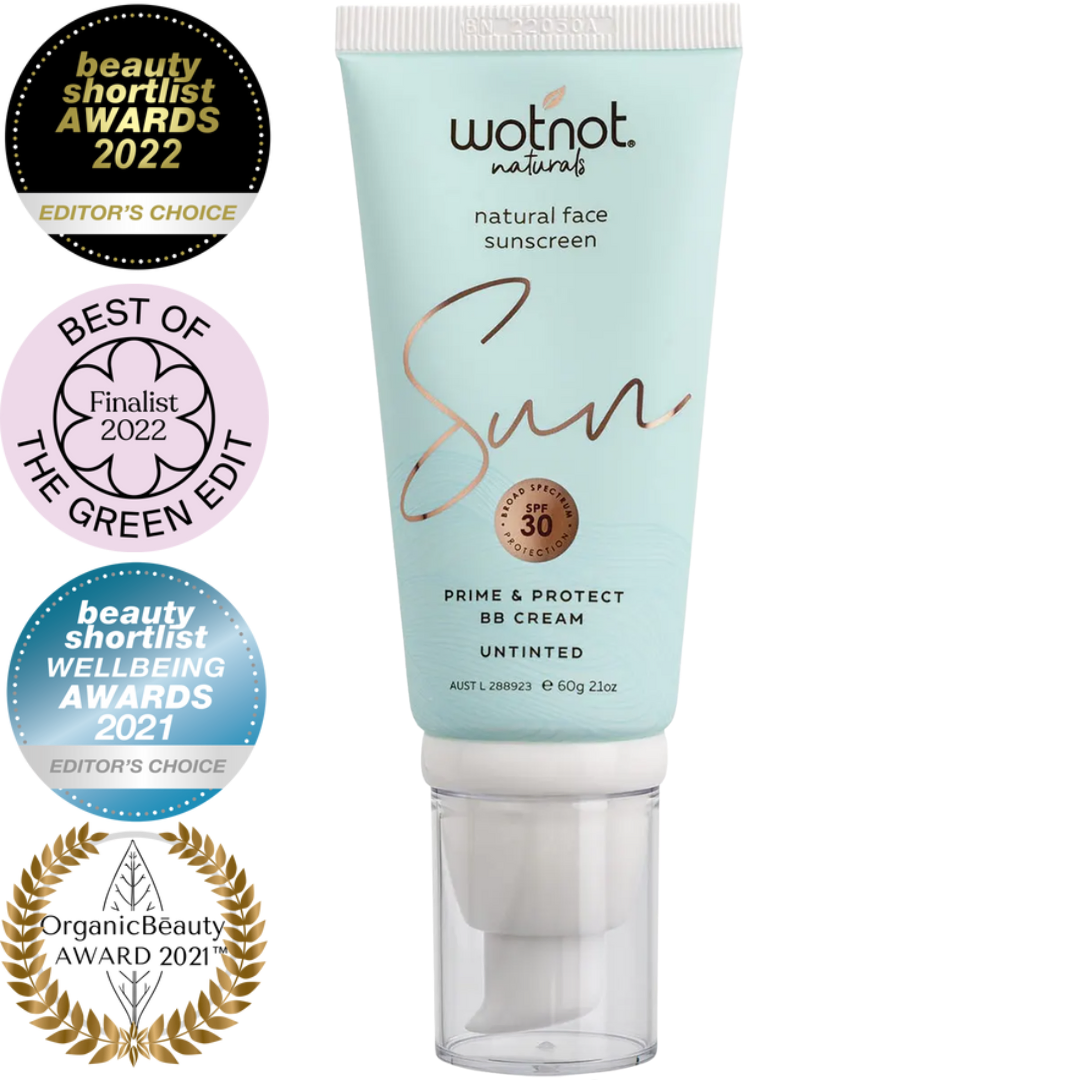 Wotnot 30 SPF Natural Face Sunscreen & BB Cream Untinted is Australia's leading natural face sunscreen and primer to protect you against sun damage. Thanks to the clever inclusion of COSMOS approved plant collagen, Wotnot unique formula is packed with age defying ingredients like plant collagen which have been proven to minimise the appearance of fine lines and wrinkles by up to 16% when used daily for 8 weeks.